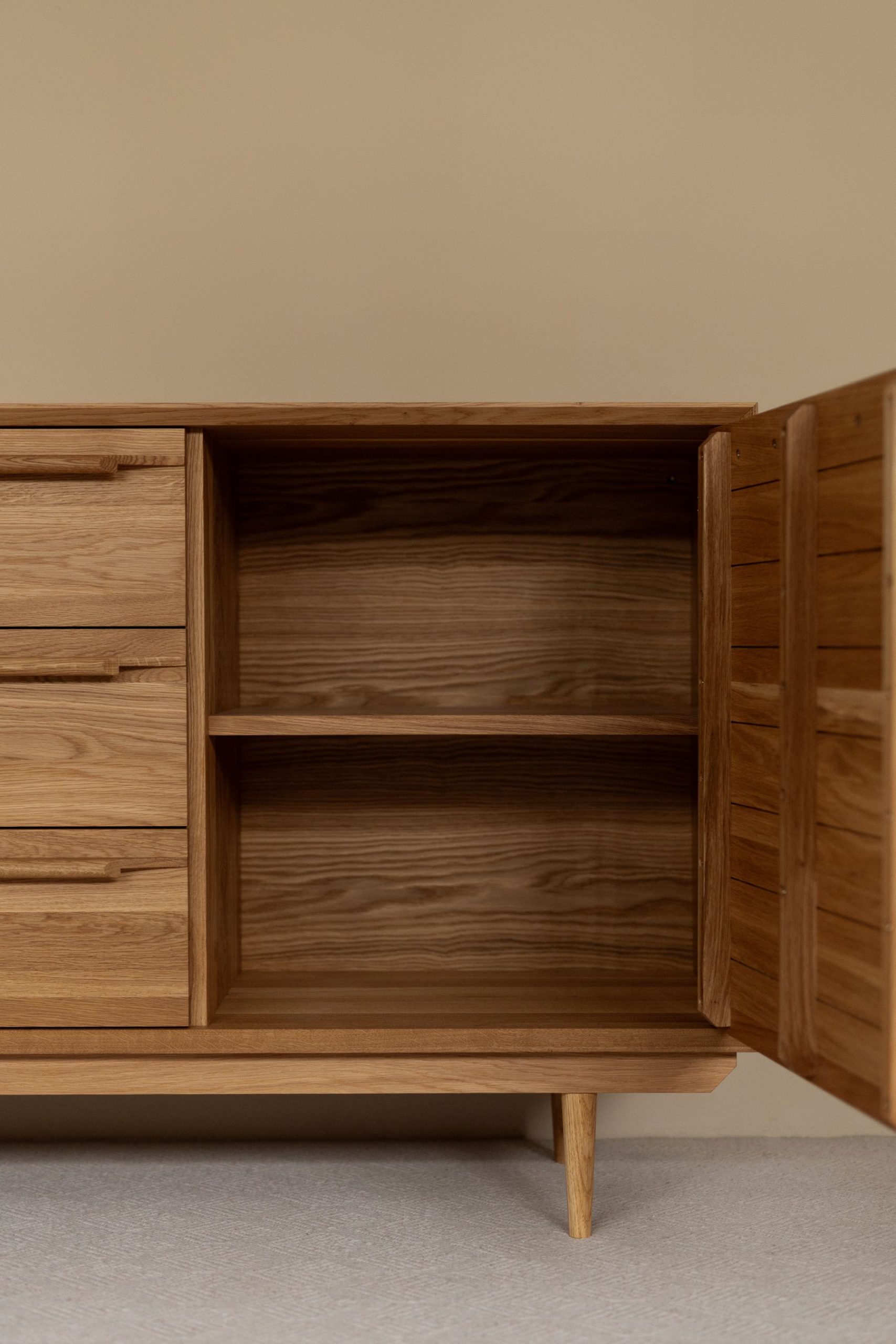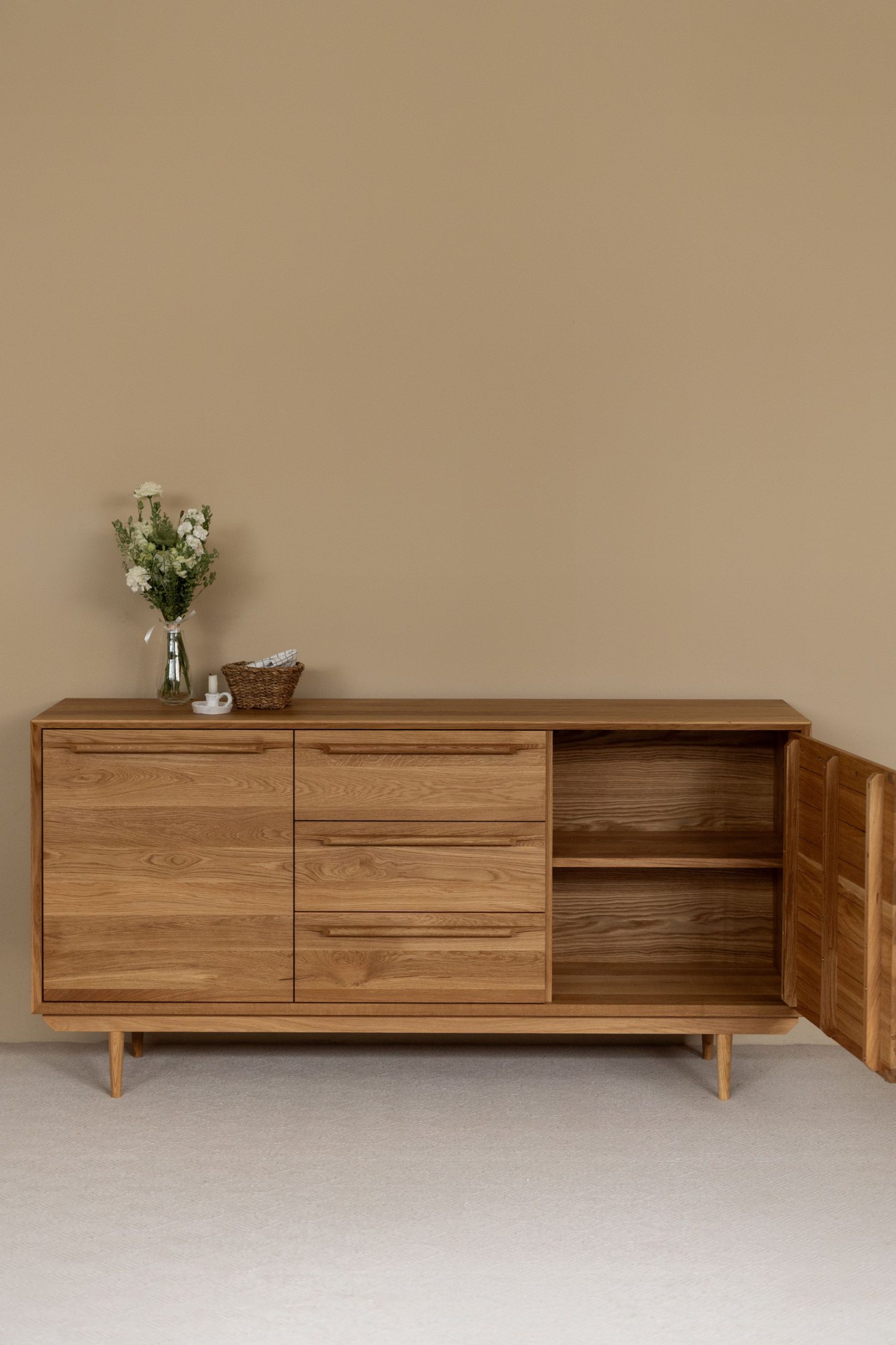 Комод из натурального дуба – про простоту и спокойствие в деталях. Чистые линии, тёплая текстура, лаконичные ручки. Вместительные ящики и закрытые отделения обеспечивают удобное хранение вещей в спальне, гостиной или столовой, оставаясь при этом визуально лёгкими.