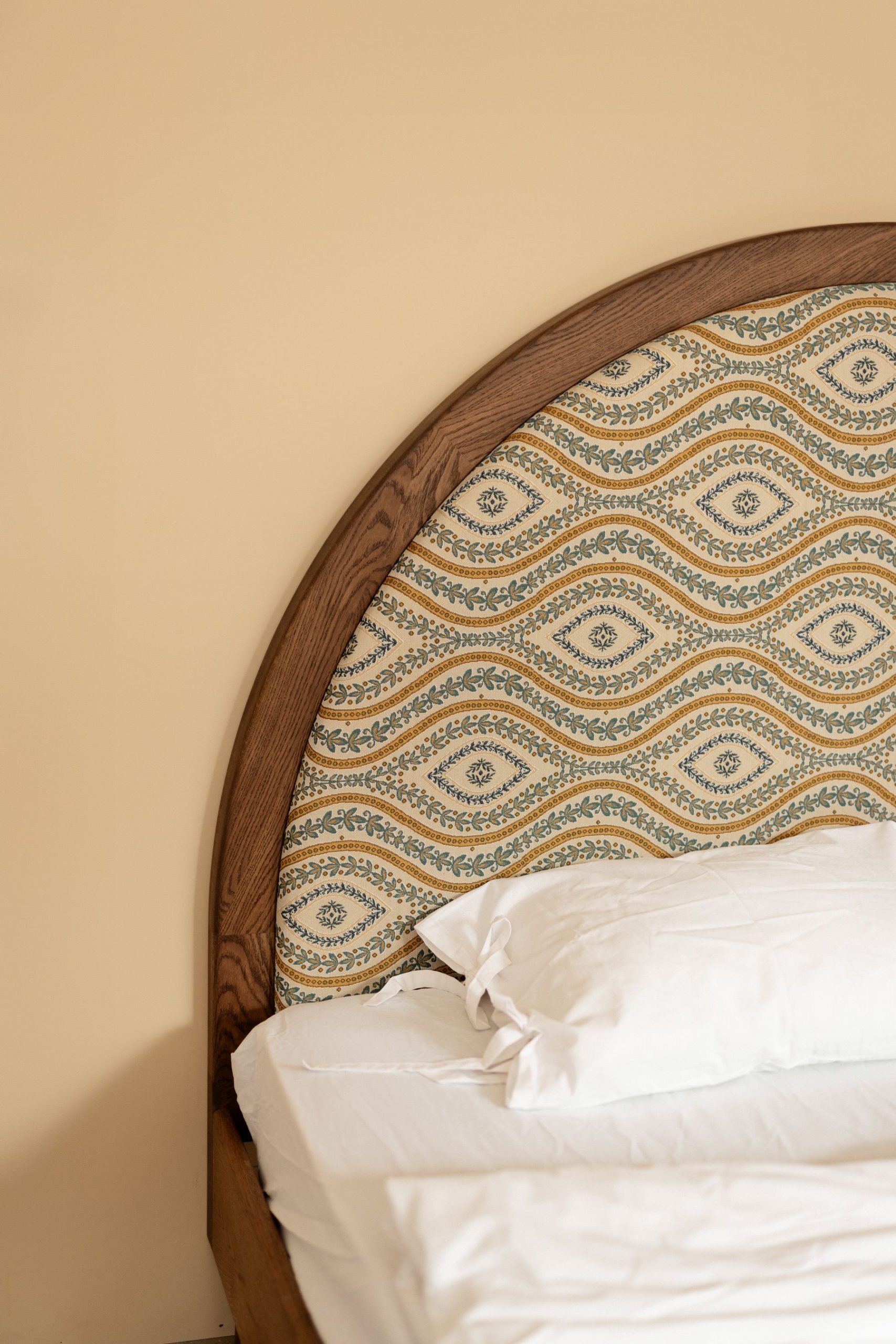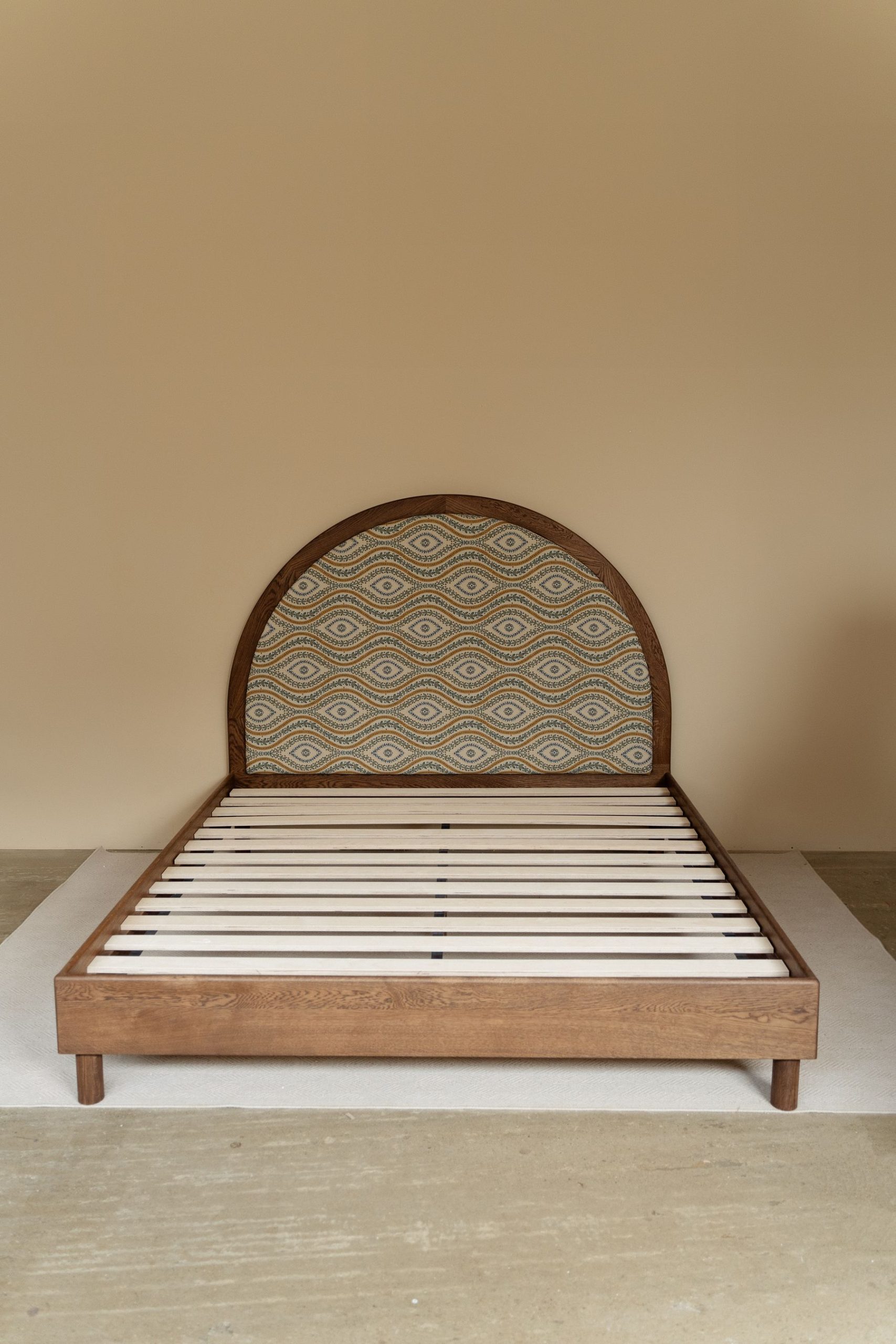 Основание кровати выполнено из массива дуба — материал надёжный и натуральный, с красивой текстурой. Изголовье обтянуто тканью, что добавляет мягкости и визуального уюта. Такая кровать хорошо впишется в современную спальню, не перегружая пространство и делая его спокойнее. На ней удобно отдыхать после насыщенного дня или устраивать ленивое утро. Простая сборка и прочные материалы обеспечивают комфорт и долговечность.