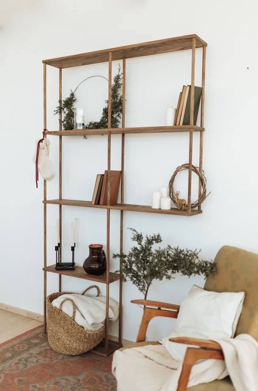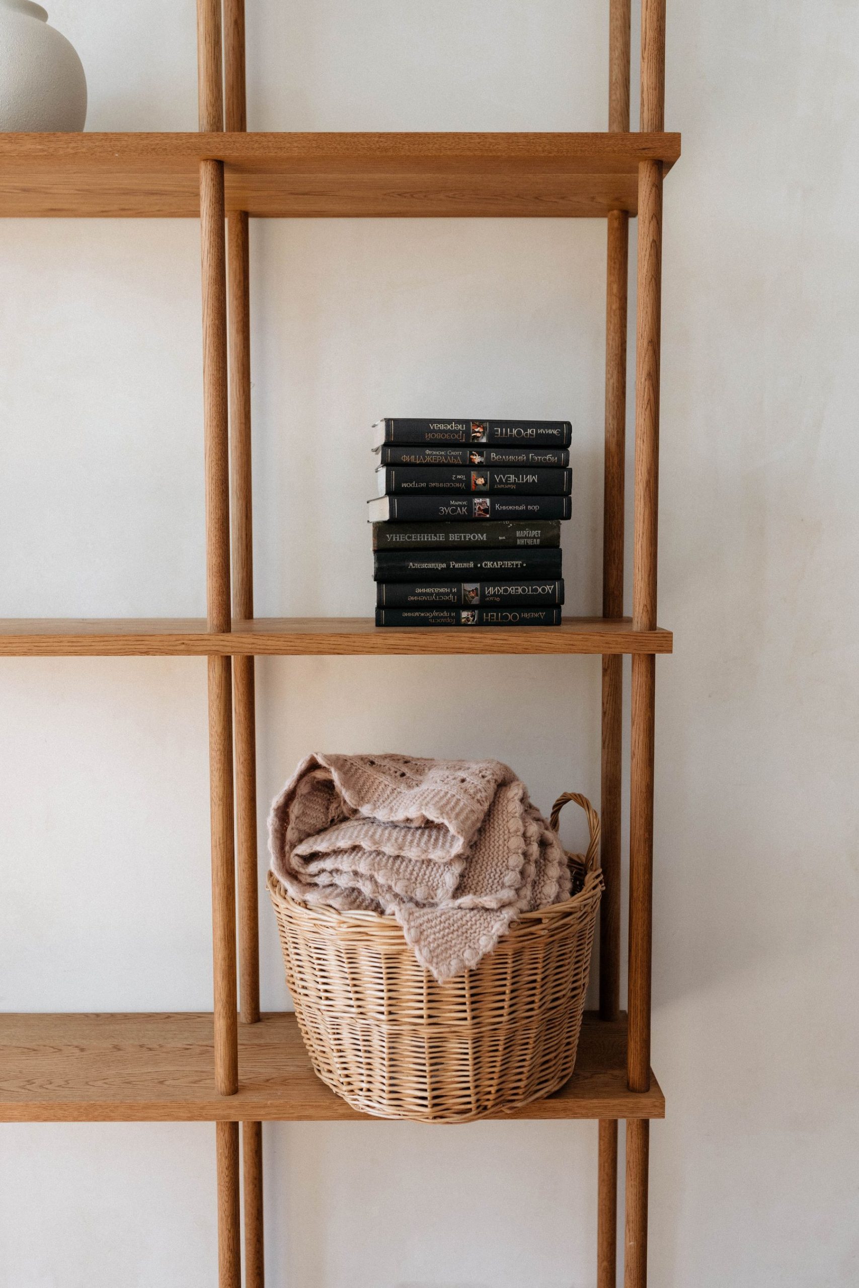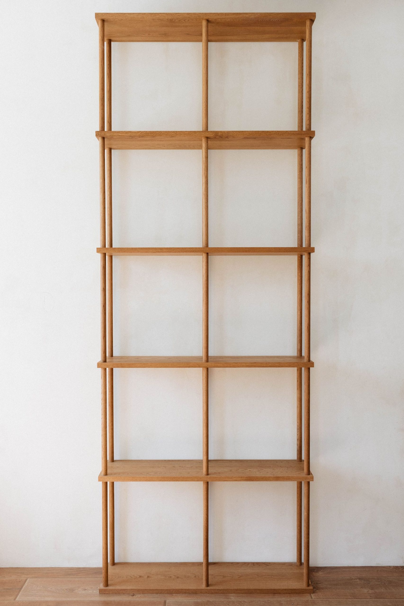 Стеллаж‑конструктор из массива дуба с открытыми полками легко подстраивается под разные сценарии хранения и декорирования. Лёгкая вертикальная система с тонкими стойками выглядит воздушно, при этом подчёркивает естественный рисунок дерева и аккуратно организует пространство.