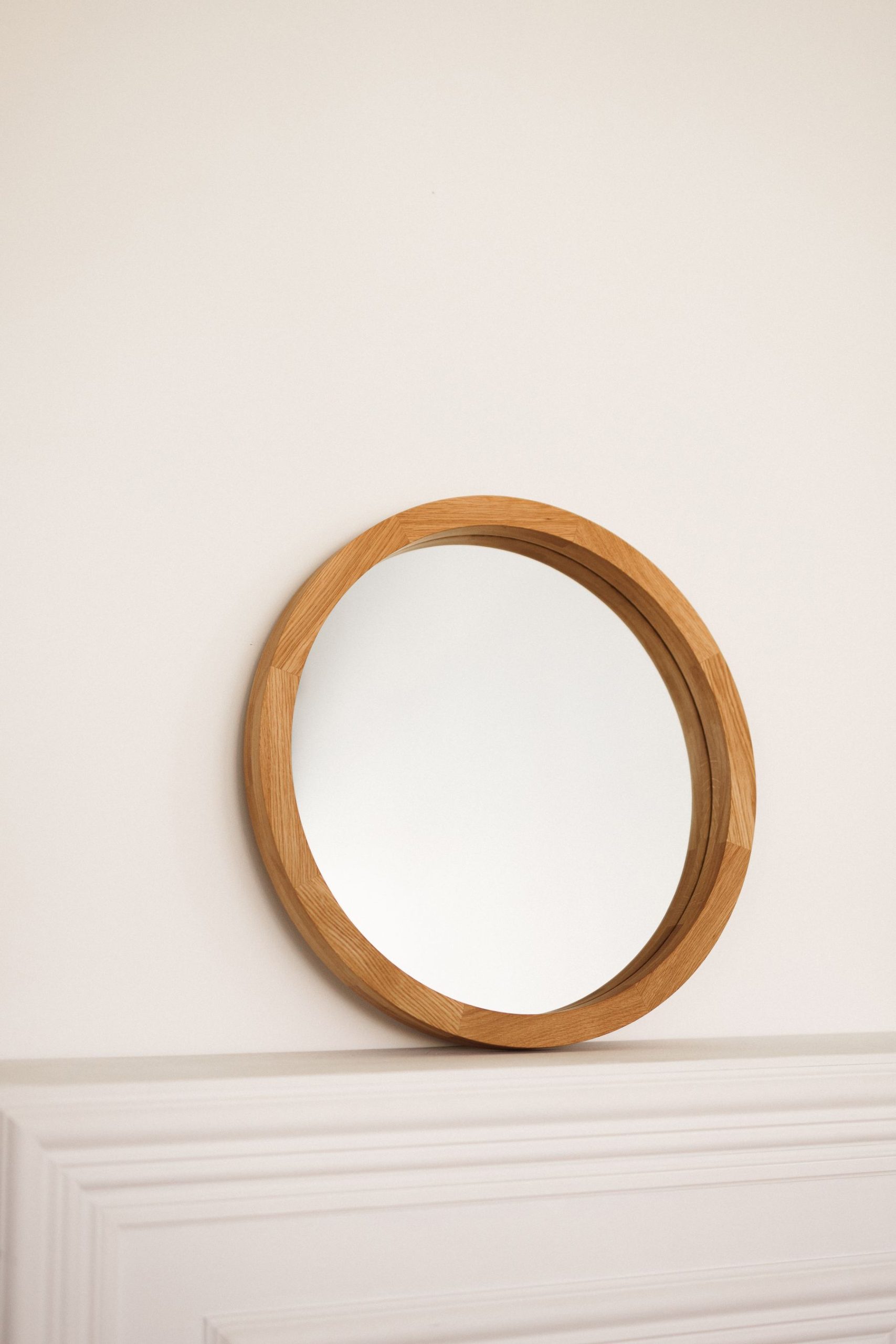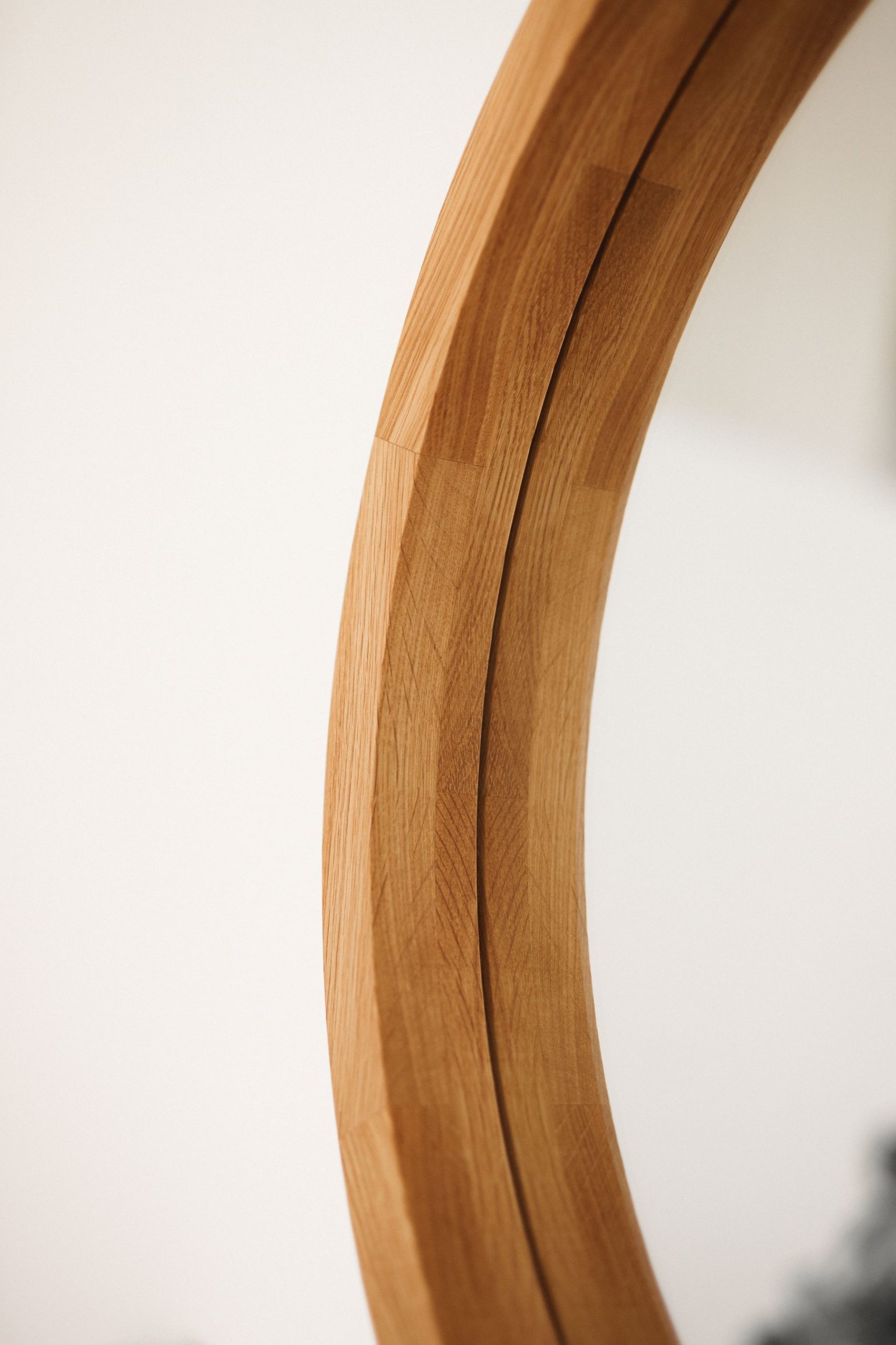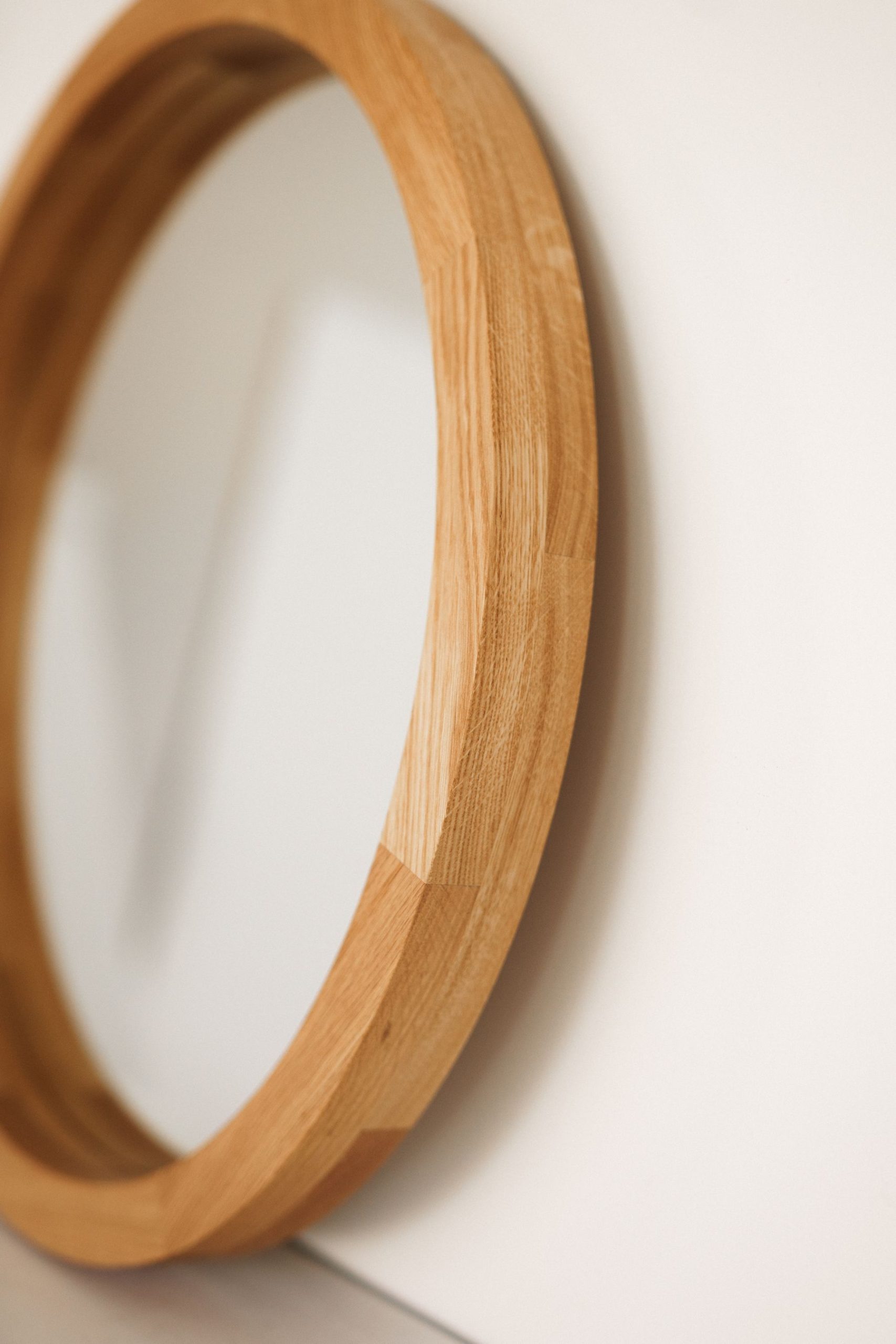 Круглое зеркало в раме из массива дуба выглядит легко и естественно, добавляет свет и пространство рядом с входом или в спальне. Натуральное дерево создаёт тёплый акцент и органично сочетается с другой мебелью. Простая форма делает зеркало универсальным — оно подходит и для современной, и для классической обстановки.