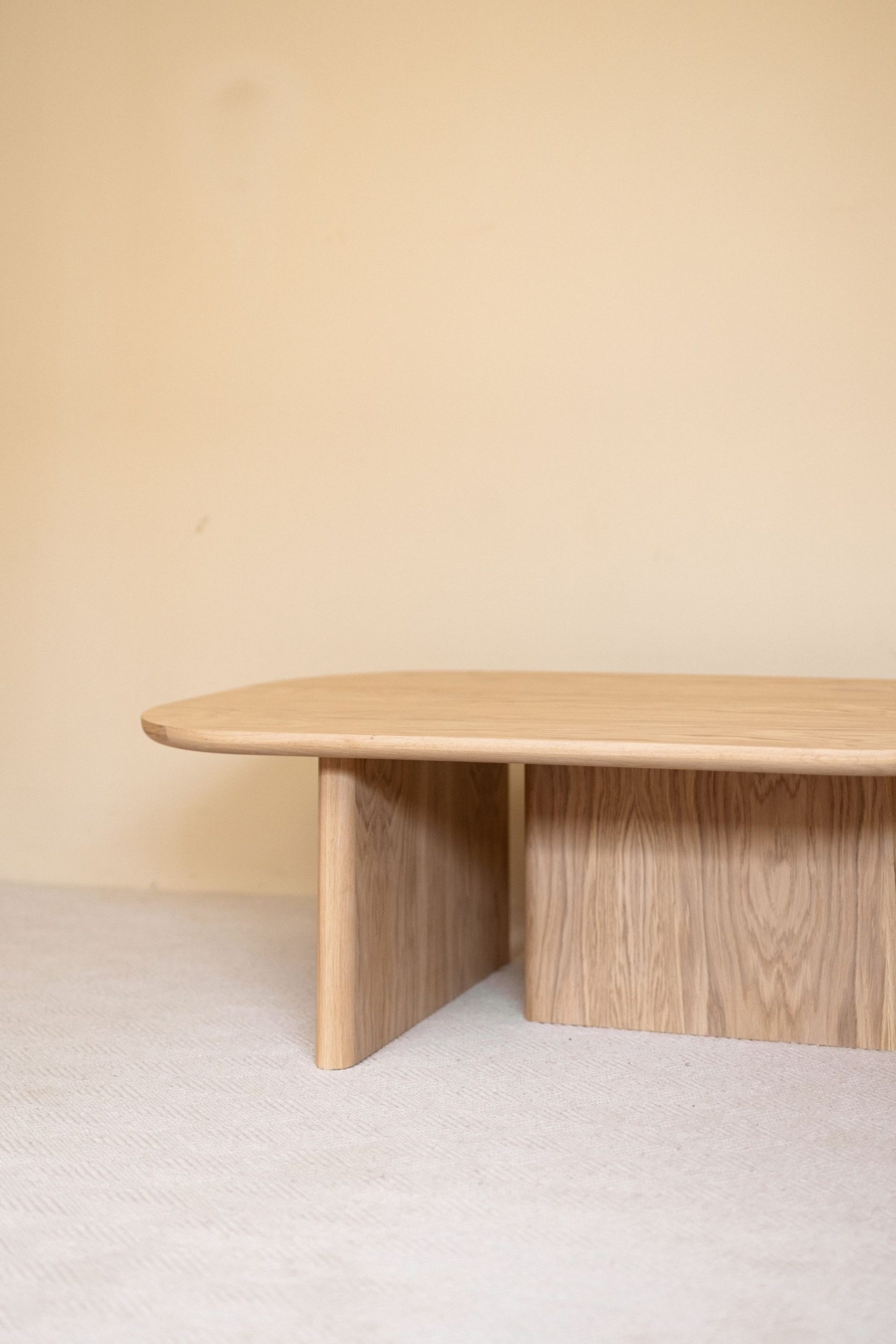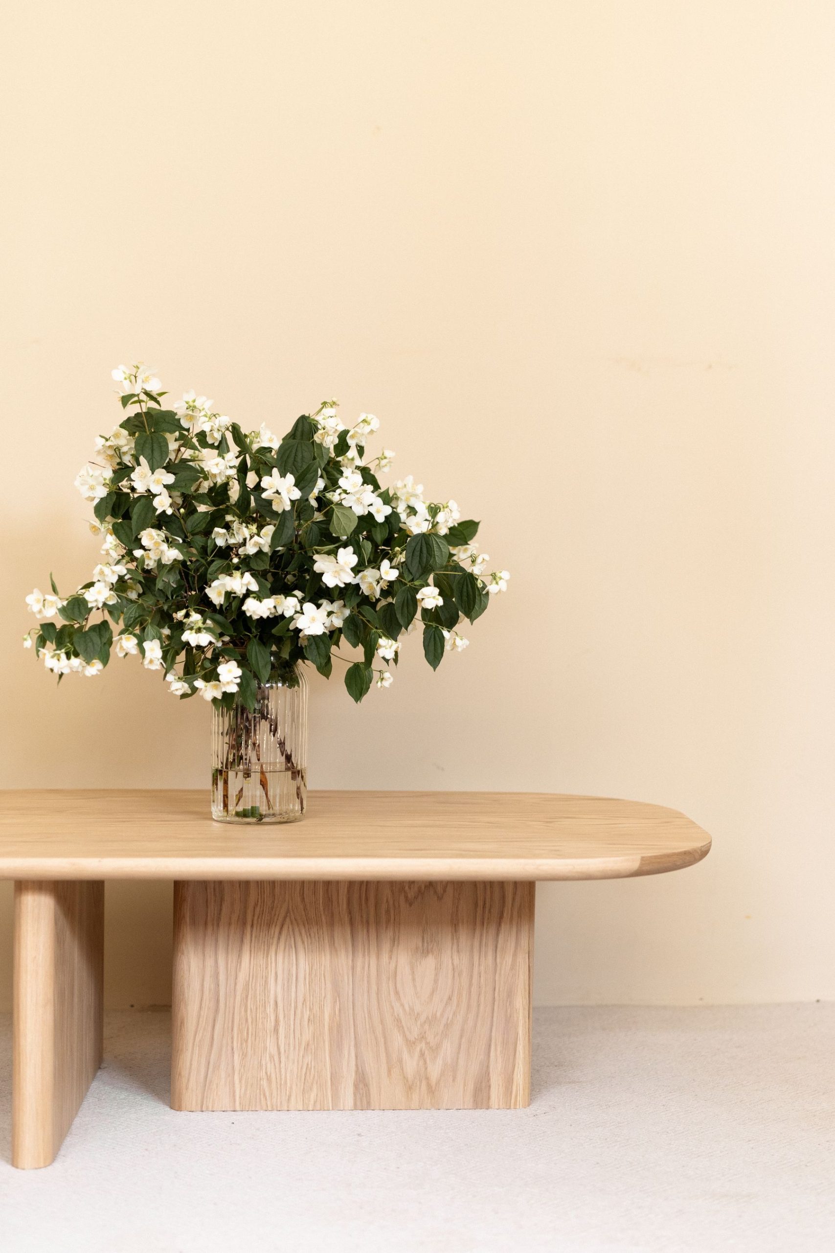 Журнальный столик с мягко скруглённой столешницей создаёт в зоне отдыха ощущение спокойствия и уюта. Объёмное центральное основание в сочетании с изящной боковой опорой формирует архитектурный силуэт и делает столик выразительным акцентом в интерьере.